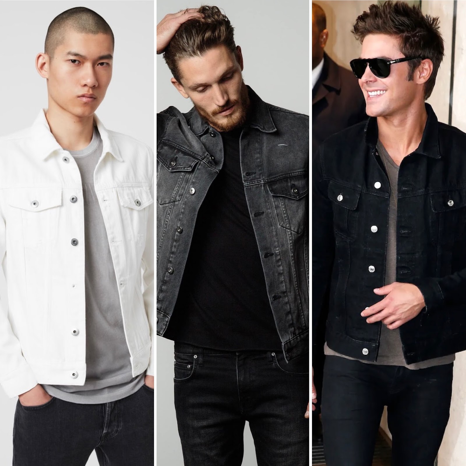 Los comodines: chaquetas de mezclilla blancas, grises y negras Al igual que el azul lavado claro, estas combinaciones de colores son opcionales. Solo debes considerarlos una vez que hayas elegido el lavado oscuro o azul medio. Las chaquetas de mezclilla blancas son geniales para la primavera/verano para alegrar tu look. Las chaquetas de mezclilla grises y negras son excelentes si buscas un estilo monocromático más vanguardista.